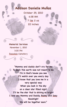 Addison went to be with Jesus just a few days before she was scheduled to enter the world.